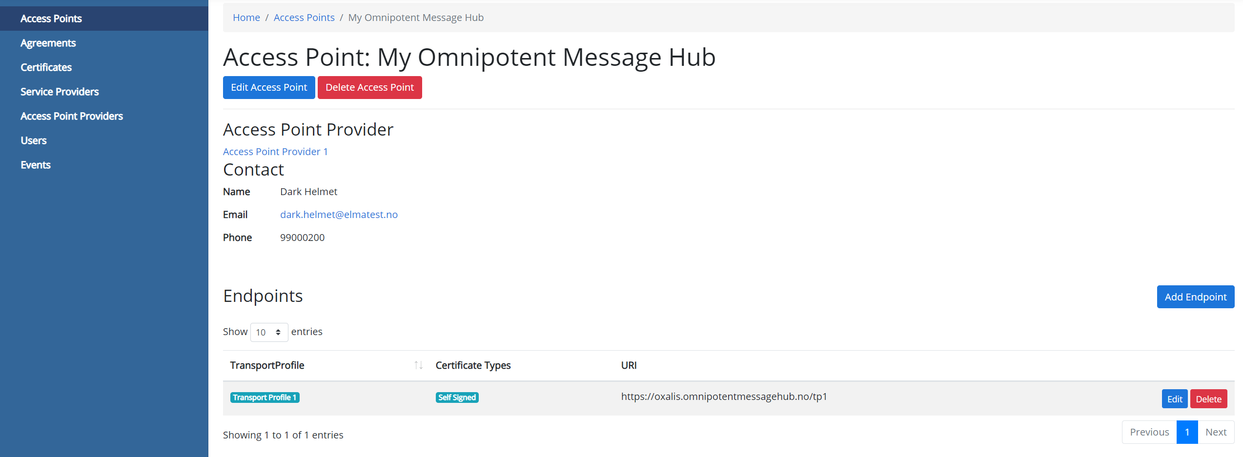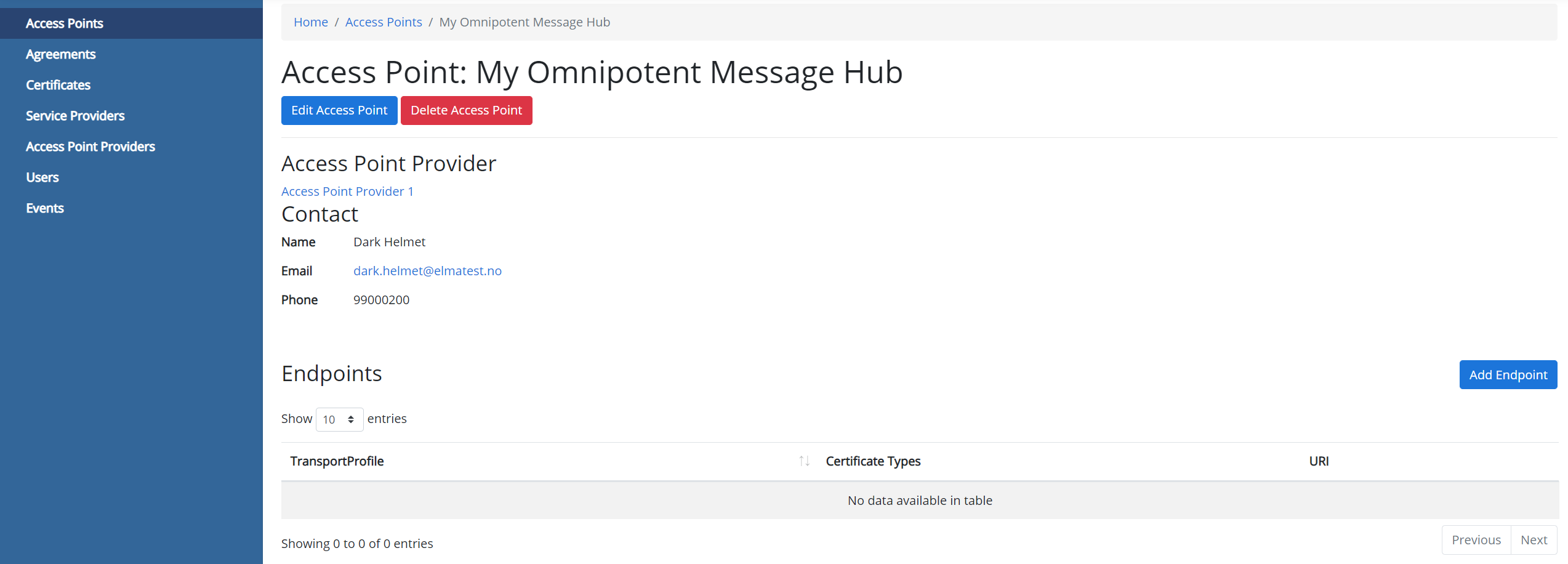 After pressing the “Save”-button, you will see access point again. This time the Endpoint-table will show the newly created Endpoint.
