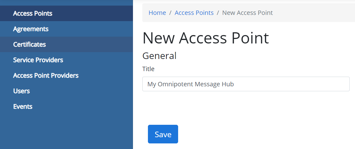 To add an access point, you can press the “Add Access Point”-button. Then you can choose a title for your access point.