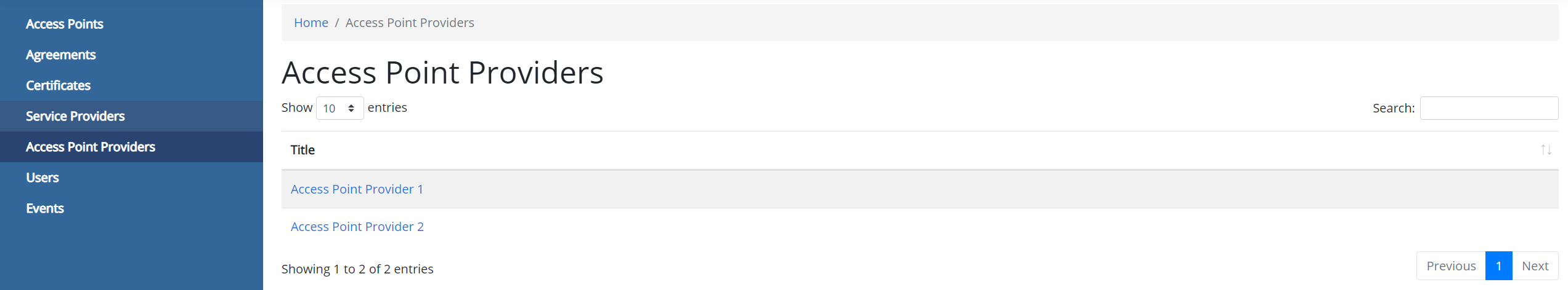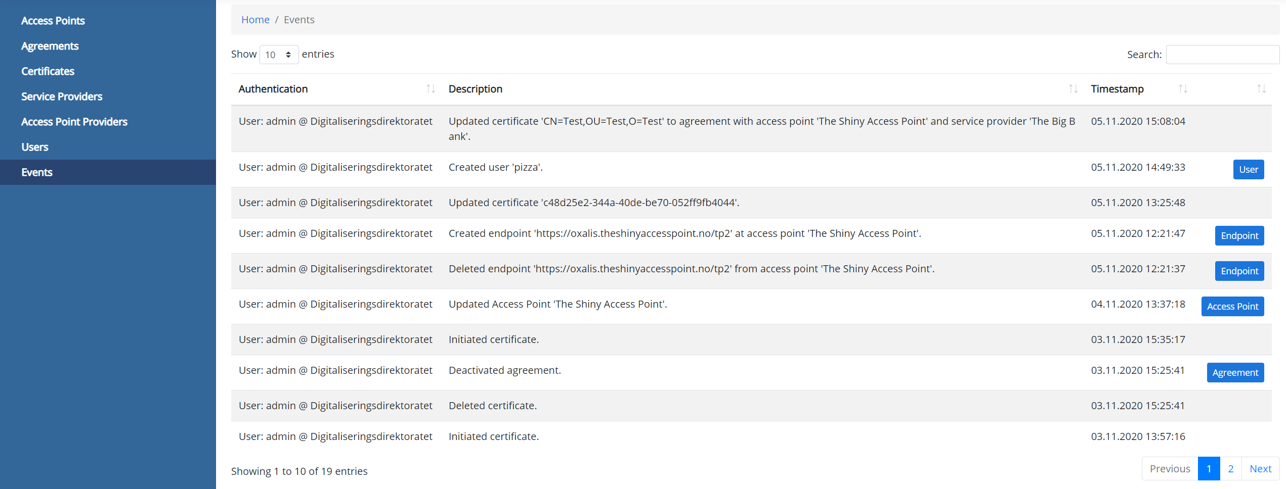 Here you will find all the create, update and delete events related to you as an Access Point Provider.