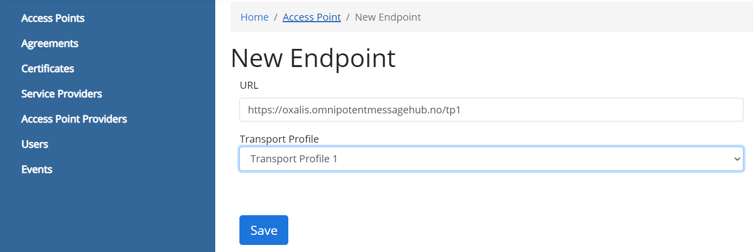 There can be one Endpoint for each Transport Profile. To add an Endpoint, press the “Add Endpoint”-button.